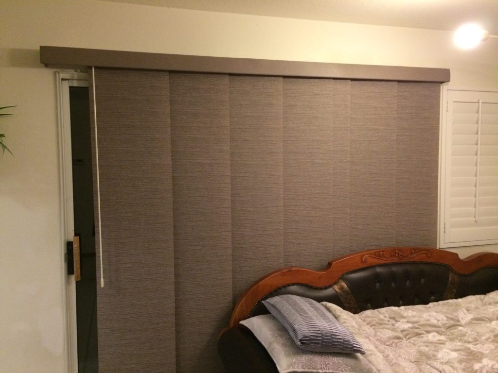 Sliding panels shades are the ideal solution for covering patio doors, sliding glass doors and oversized windows. Our Sliding panels are available in numerous fabric, solar screen, or woven materials. Sliding panels shades are easy to coordinate with any décor style as well as other window coverings in the room.
