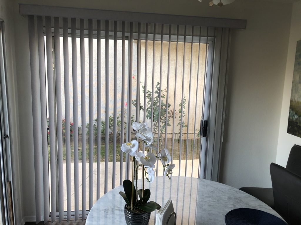 Vertical blinds have always been a popular choice for many reasons, including that they offer excellent light control and privacy for your home. The individual vanes and the rotating control allow for an infinite number of light and privacy options. Our free-hanging vertical blinds come in vinyl and fabric.